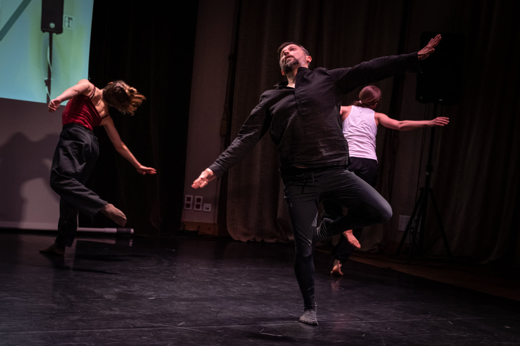 W drugiej części wieczoru Eryk Makohon zrezygnował z prezentacji spektaklu, czy niewielkiego performansu na rzecz pokazu swoich technik i metod pracy z tancerzami. Publiczność mogła więc obserwować coś na kształt próby i wykładu performatywnego w jednym. Przyglądanie się trójce artystów powtarzających zaproponowane przez choreografa sekwencje, to jak analizują i pogłębiają każdy ruch, krok było ciekawym doświadczeniem, przybliżającym kulisy pracy teatru tańca. Eryk Makohon zadawał tancerzom pracę do wykonania, jednocześnie ukierunkowując ich działania tak, aby kinetyka, przepływ energii i ekspresja ciała stanowiły integralny element każdej kompozycji. Widać w tym fascynację lub przynajmniej – inspirację – metodami pracy Eugenio Barby, do zgłębiania których zresztą choreograf się przyznaje, gdzie samo zaangażowanie energii jest chyba ważniejsze niż osobista ekspresja tancerza. Artyści pracują też używając przeciwstawnych napięć i układów ciała, zmieniają także punkty równowagi, co pomaga w uzyskaniu większej dynamiki na scenie. Na pozór praca Makohona z zespołem sprawia wrażenie improwizacji, jednakże nic bardziej mylnego – każda sekwencja bowiem jest precyzyjnie zaplanowana w najdrobniejszym szczególe.